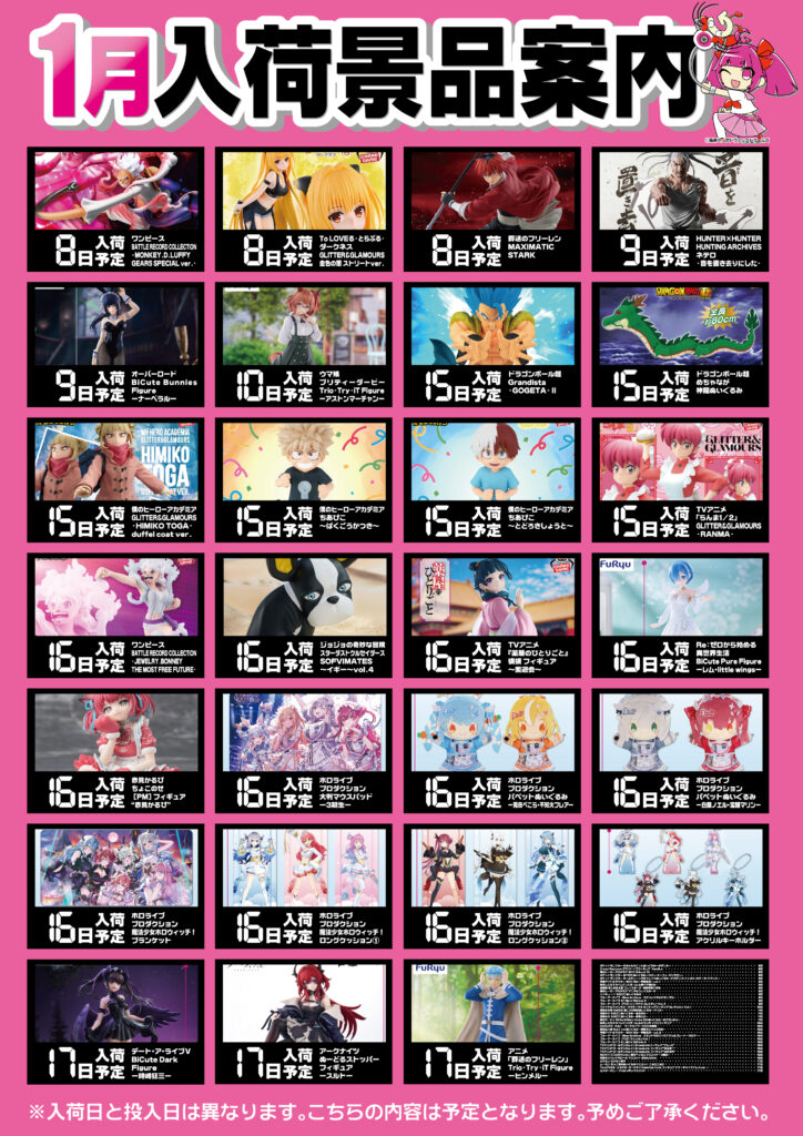 【小倉店】1月の景品情報